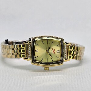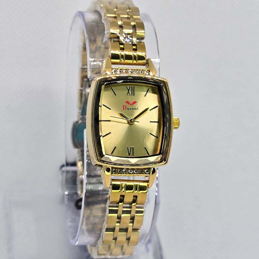 ساعة نسائية ميناء مستطيل ذهبي ...
